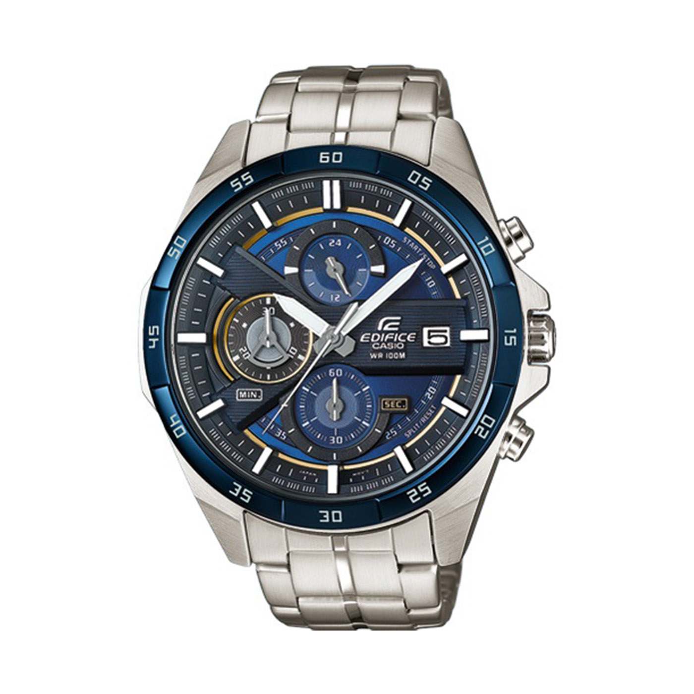 • Quadrante multistrato • Cronometro al secondo • Impermeabile fino a 100 metri di profondità • Visualizzazione data • Cornice con placcatura ionica nera (EFR-556DB-1AV) • Cornice con placcatura ionica blu (EFR-556DB-2AV)